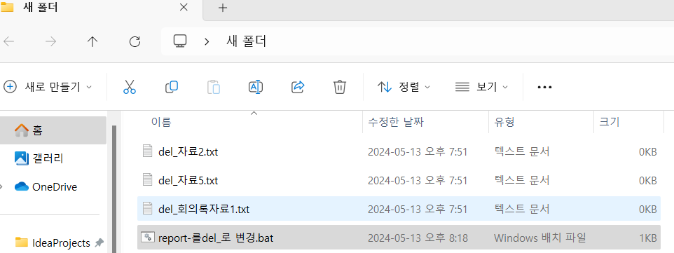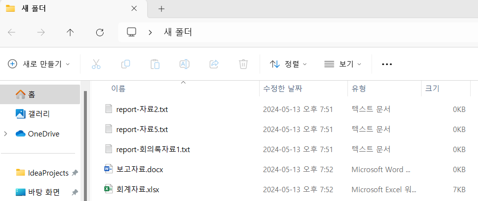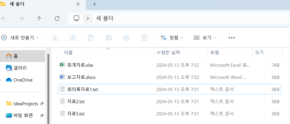 (새 폴더에 5개의 예시 파일을 생성 하였습니다)