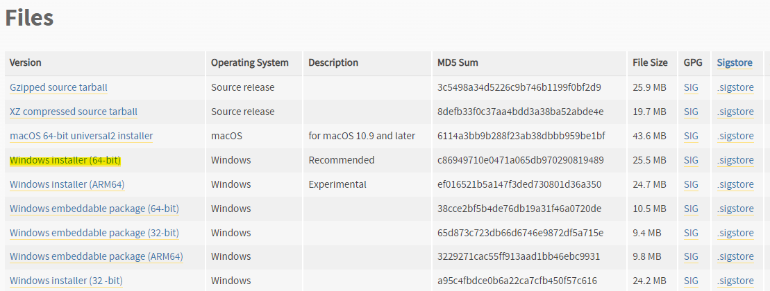 (저는 Windows Installer 64-bit 버전을 다운로드해주겠습니다)