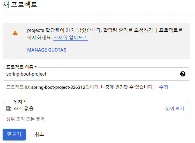 프로젝트 구성 후 생성을 해줍니다.
