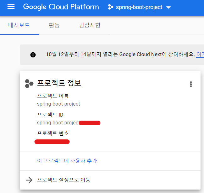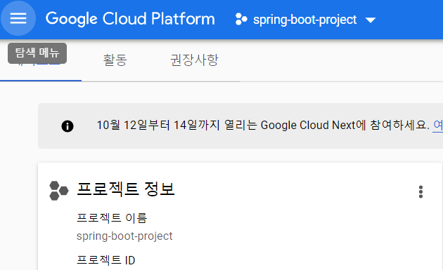 Google Cloud Platform Console로 이동해줍니다.
