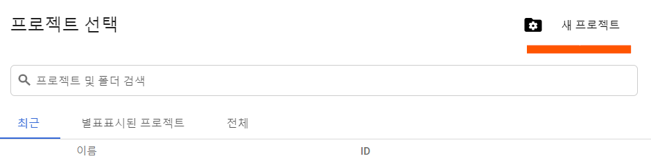 새 프로젝트 생성을 위해 새 프로젝트 버튼을 클릭합니다.