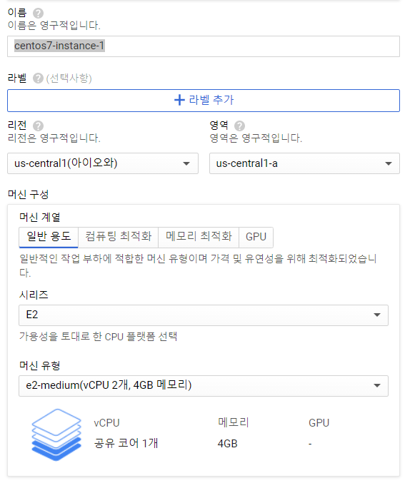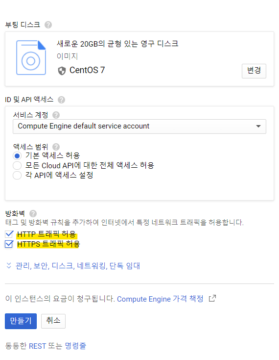 Compute Engine(CentOS 7 - 배포 서버) 생성 하기